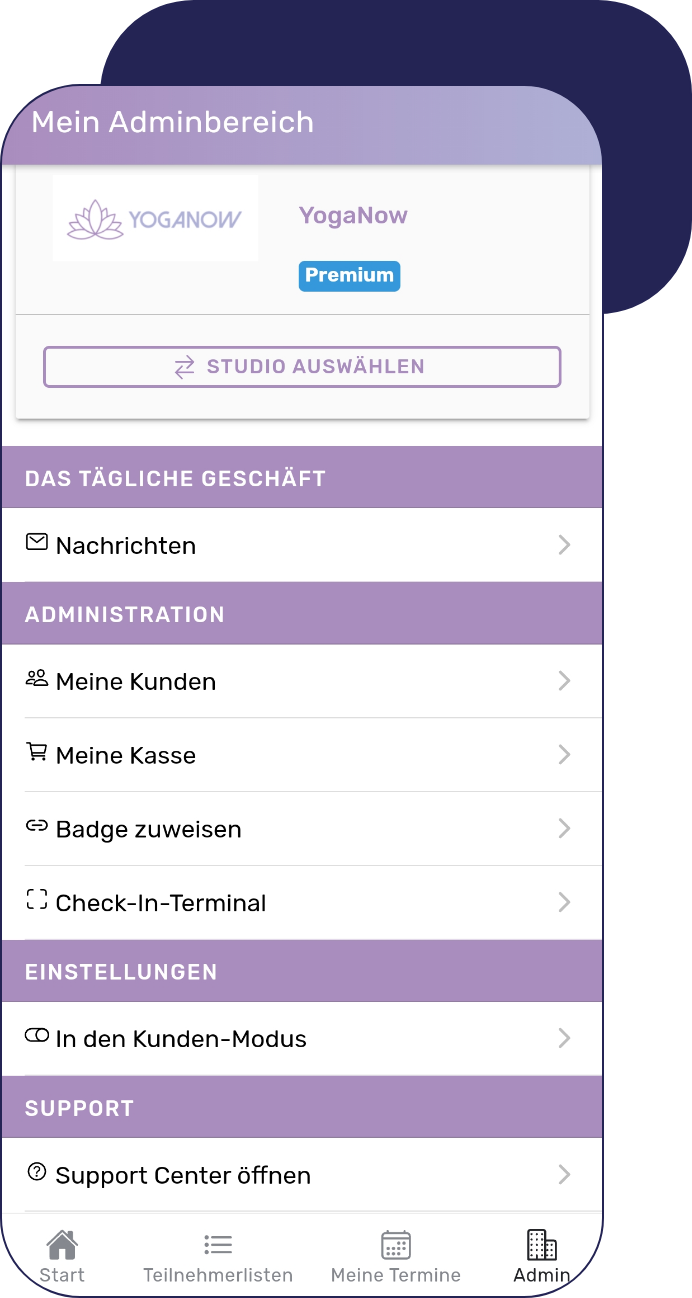 Durch die zahlreichen verschiedenen Einstellungen kannst du dein Angebot und dein Studio jederzeit bearbeiten und an deine aktuellen Bedürfnisse anpassen. Somit hältst du dein Studioprofil, dein Team, deine Stunden und deine Abonnemente auf dem neusten Stand.
