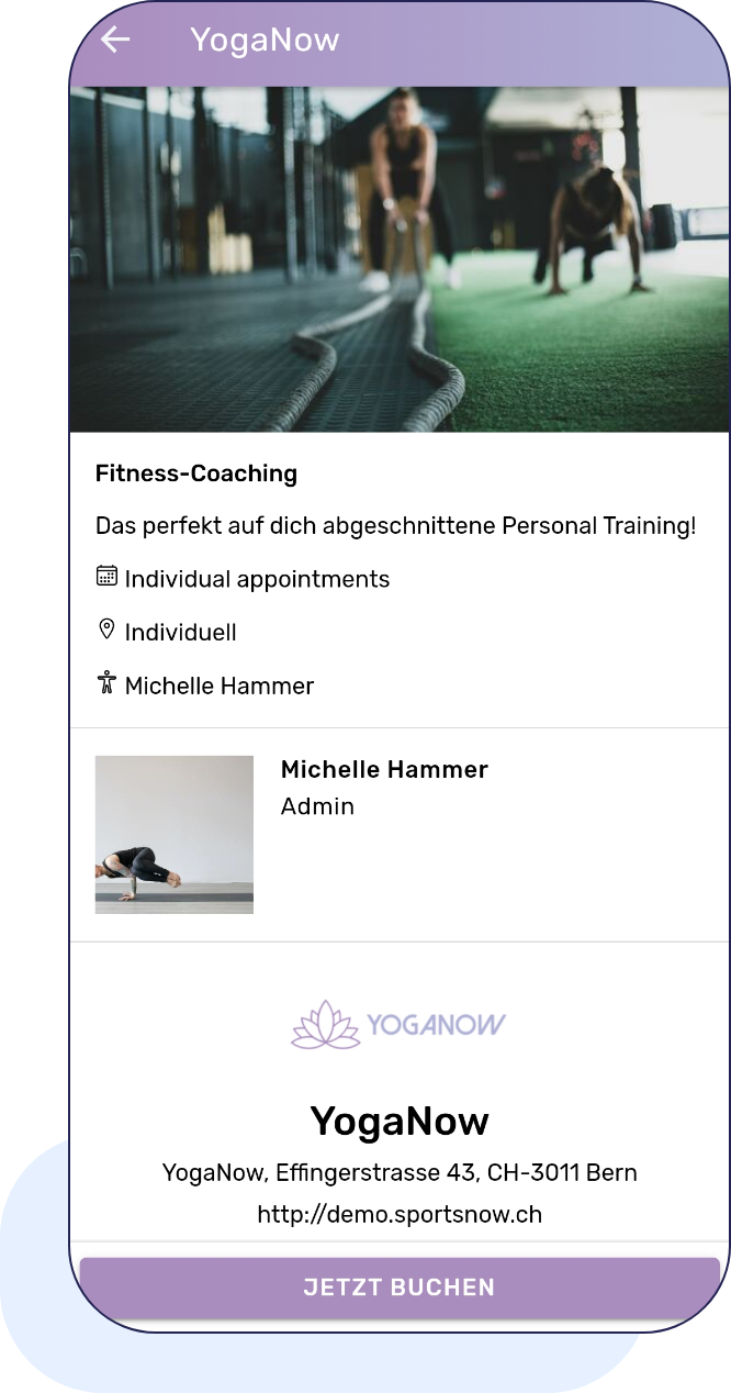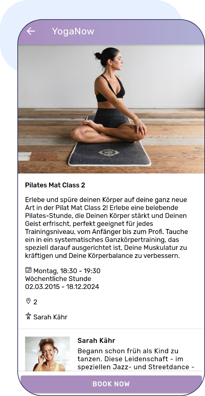 Erstelle und bearbeite deine Stunden oder Workshops direkt im Stundenplan von SportsNow. Dank der umfangreichen Stundeneinstellungen kannst du deine Stunden genau so abbilden, wie du möchtest. Jede Stunde verfügt zudem über eine eigene Detailseite mit allen wichtigen Informationen zu Ablauf und Zeit der Stunde.
