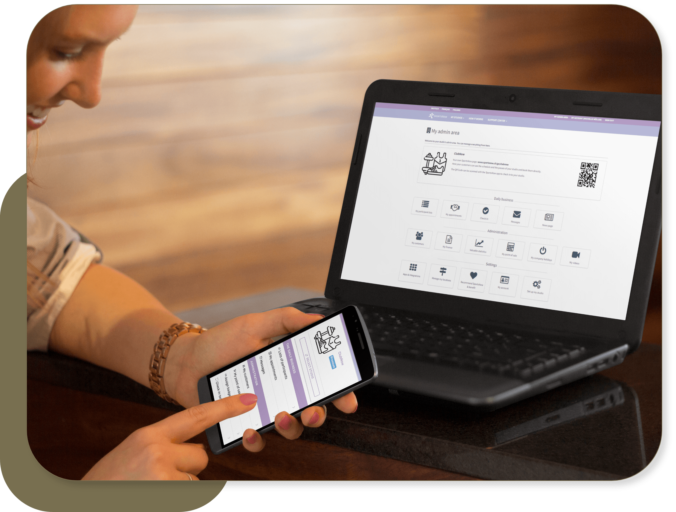 For efficient management of member data, invoices and appointments, all features are also available in the mobile app. This allows you to manage your sports club from anywhere while always keeping track of everything. Your members can also use the SportsNow app to book their next class and view their pass at any time.