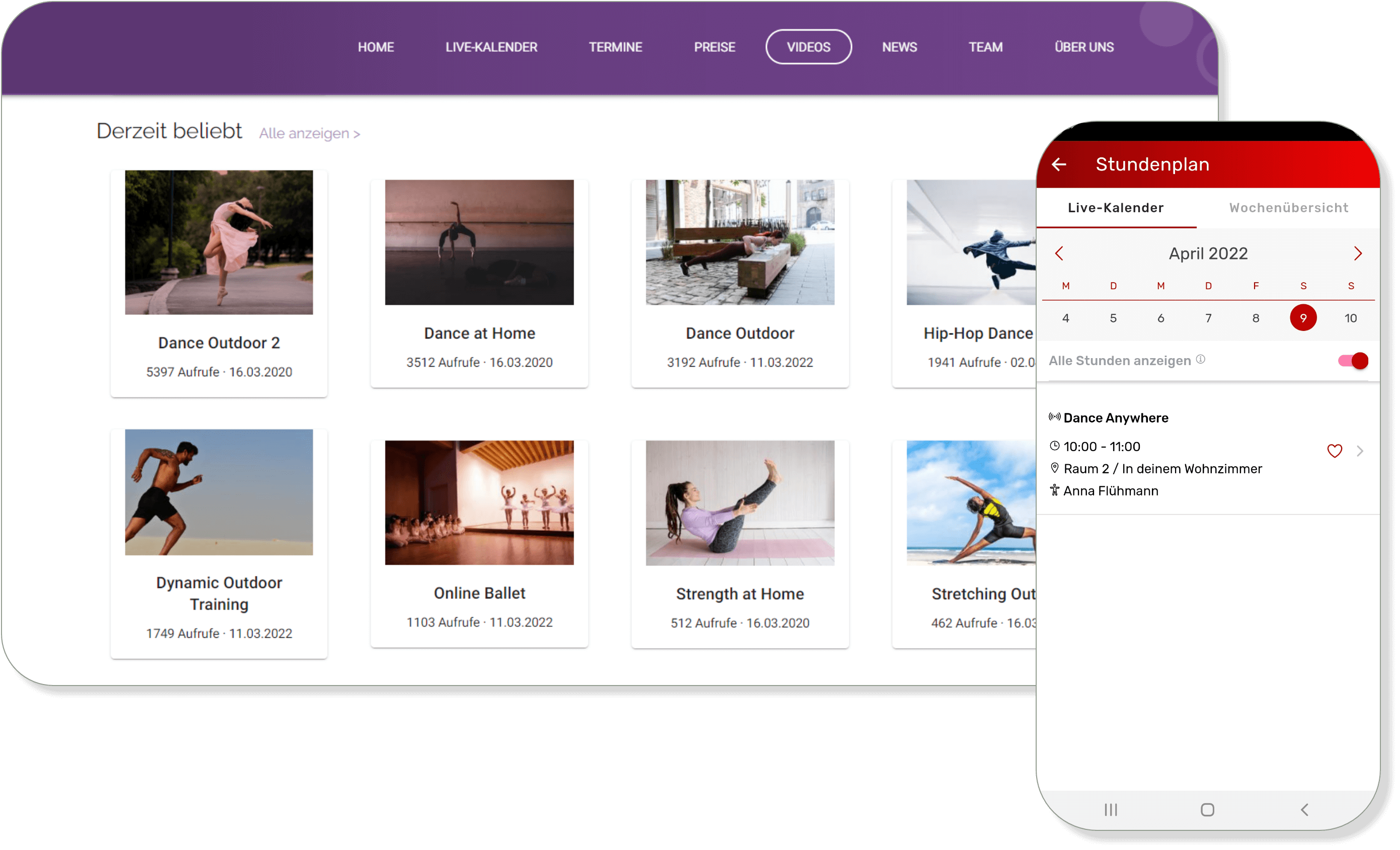 Teile deine Tanzstunden direkt per Livestream mit den Mitgliedern zu Hause und halte so Online-Kurse in Echtzeit ab. Für ein erweitertes Online-Angebot ermöglicht dir zudem das Videoportal einen schnellen und unkomplizierten Verkauf von Videos an deine Mitglieder. Alle wichtigen Informationen und Anleitungen dazu findest du in unserem Support-Center: Das Videoportal erklärt