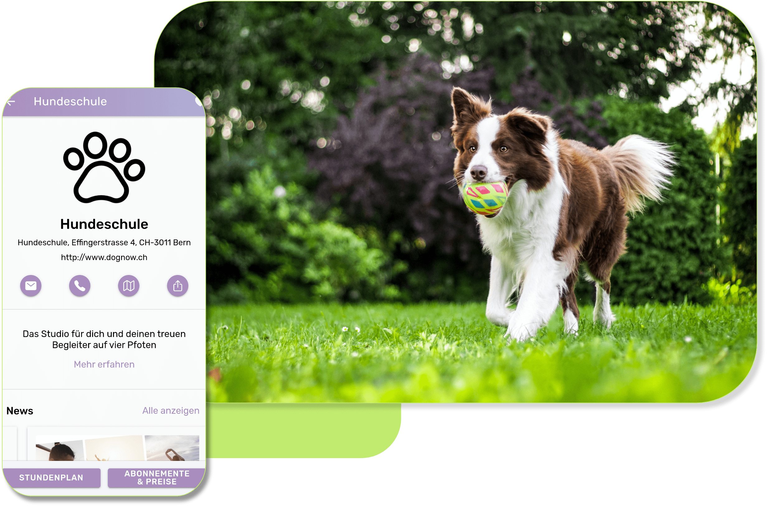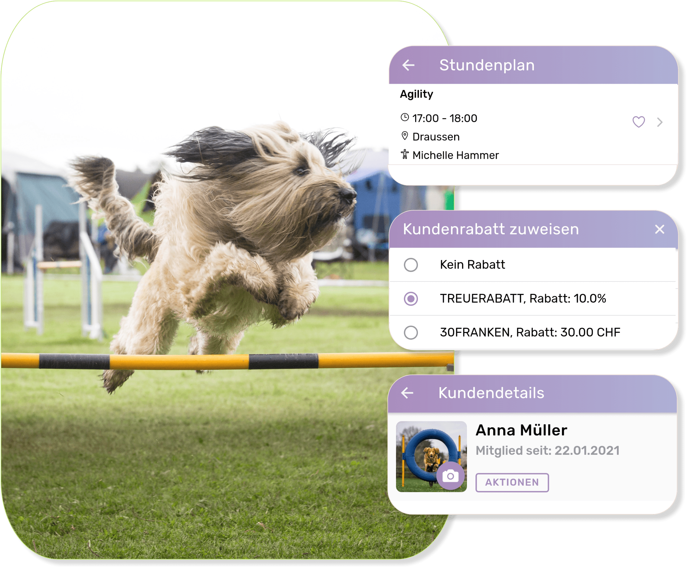 Egal, ob Agility, Welpenschule oder Alltagstraining - Deine Mitglieder können direkt im Stundenplan das gewünschte Angebot aussuchen, ein Abonnement kaufen und in wenigen Schritten online buchen. SportsNow bietet dir zudem auch die Möglichkeit, individuelle Termine für Einzeltrainings zu erstellen und anzubieten.