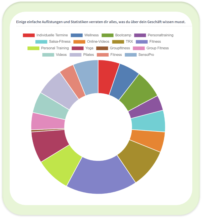 Schau dir an, wie gut sich deine Abonnemente verkaufen und behalte die Übersicht über Anzahl Stunden und Abonnemente, die deine Mitglieder aktuell haben. Dank diesen Auswertungen sparst du auch besonders Zeit bei der Buchhaltung und dem Jahresabschluss.