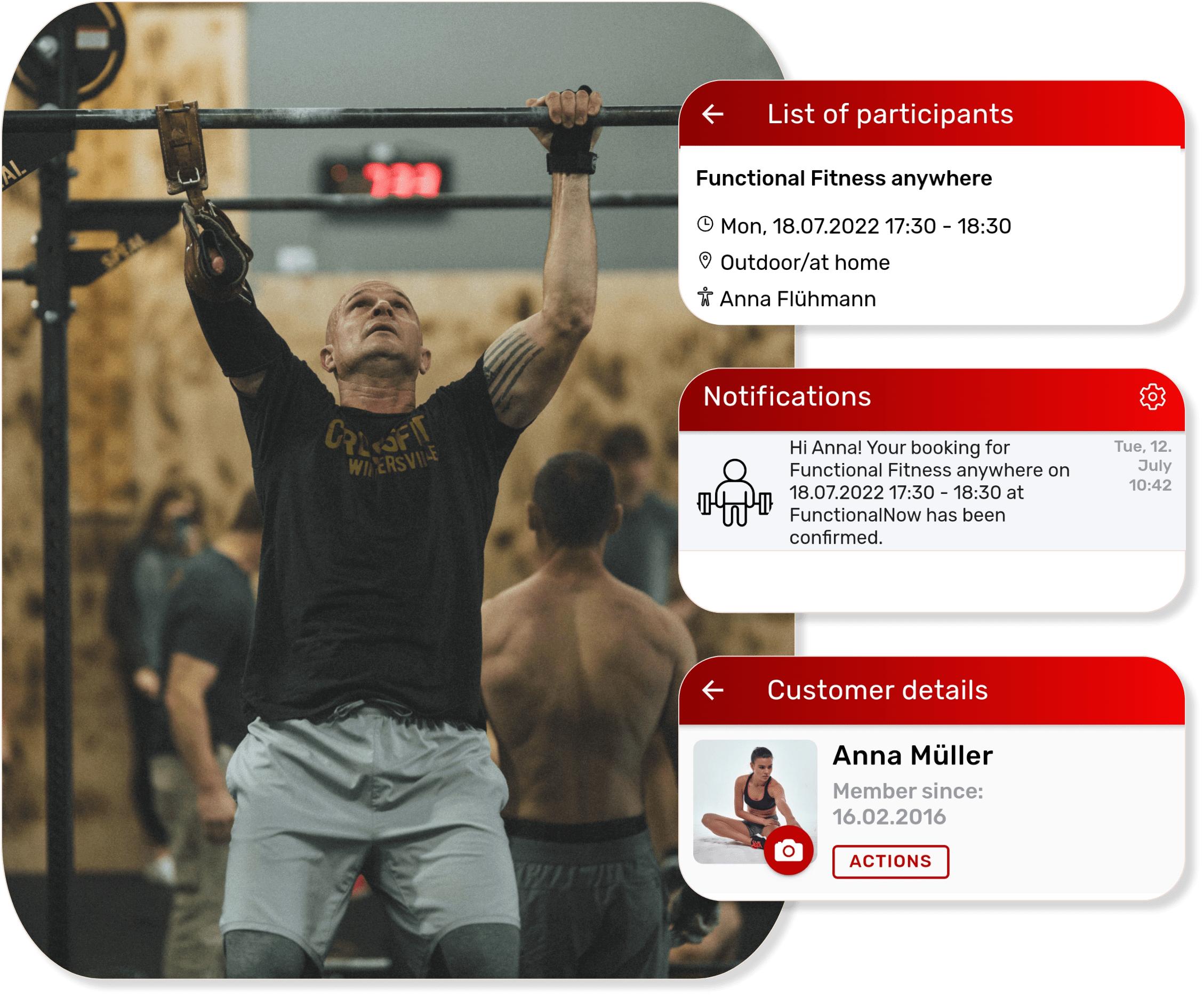 Thanks to automatic push notifications, your members and instructors are also always informed about important changes and news.