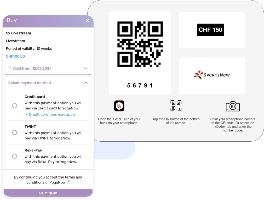 Stop chasing unpaid bills – respond to your members' different preferences and offer various payment options. With credit card, TWINT and Reka, you have secure payment methods that allow your members to pay for their passes seamlessly.
