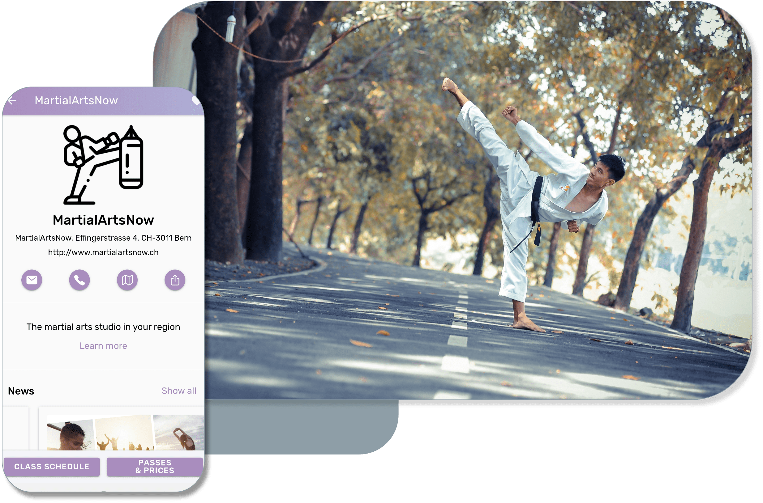Whether kickboxing, mixed martial arts or jiu jitsu - your members can select the desired training directly in the class schedule, buy a pass and book it online in just a few steps.