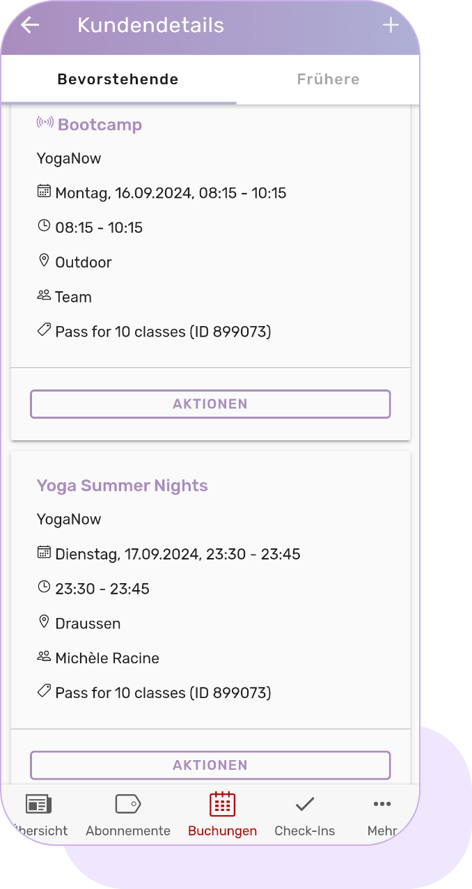 Buchungen und Teilnehmerlisten verwalten