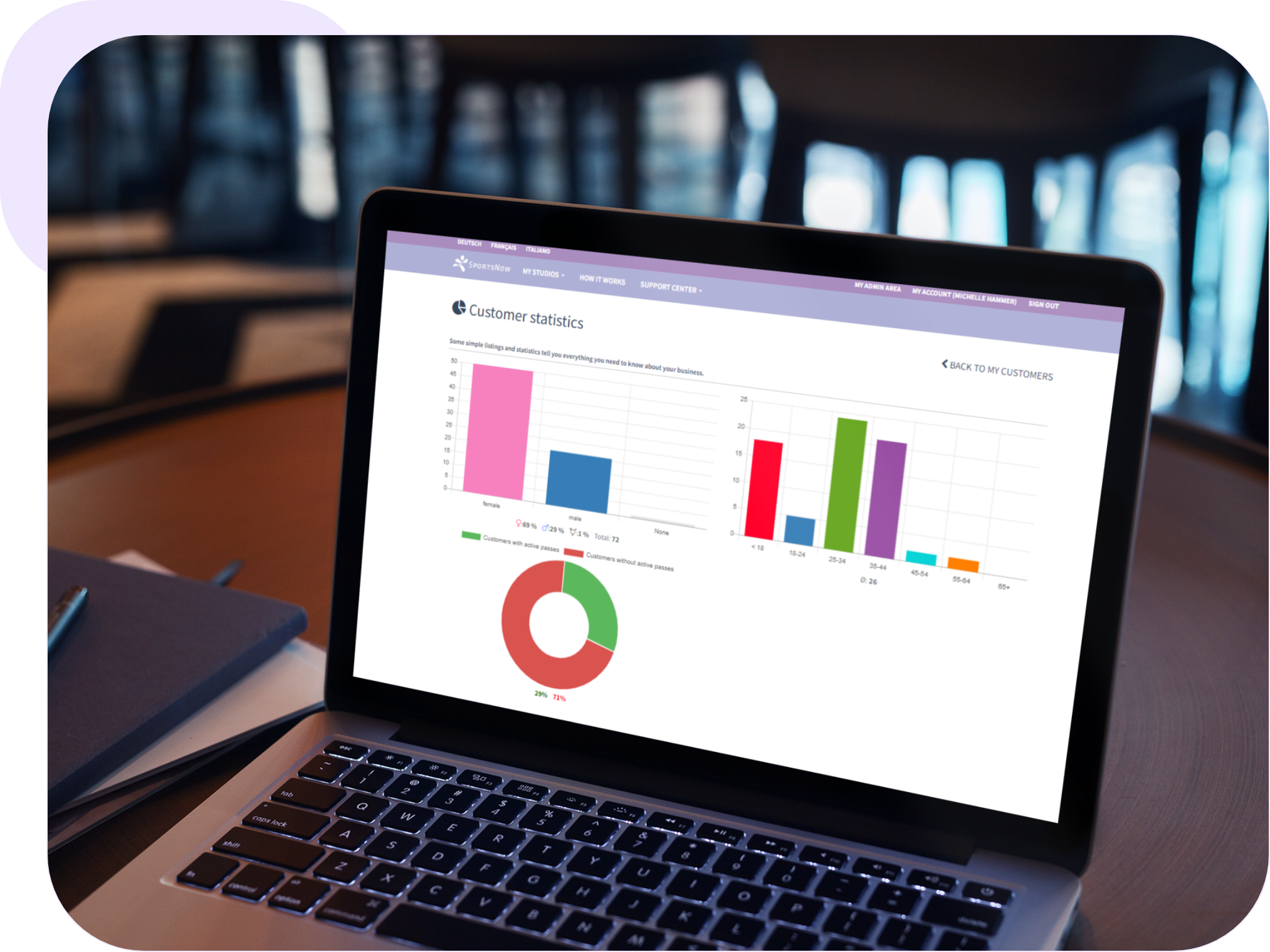 Stelle mit der Zutrittskontrolllösung sicher, dass nur Mitglieder mit einem gültigen Abonnement Zutritt zu deinem Studio erhalten. Zudem kannst du im Überblick behalten, wer sich gerade in deinem Studio befindet. Deine Mitglieder können direkt vor Ort durch Scannen eines QR-Codes mit der SportsNow App einchecken.