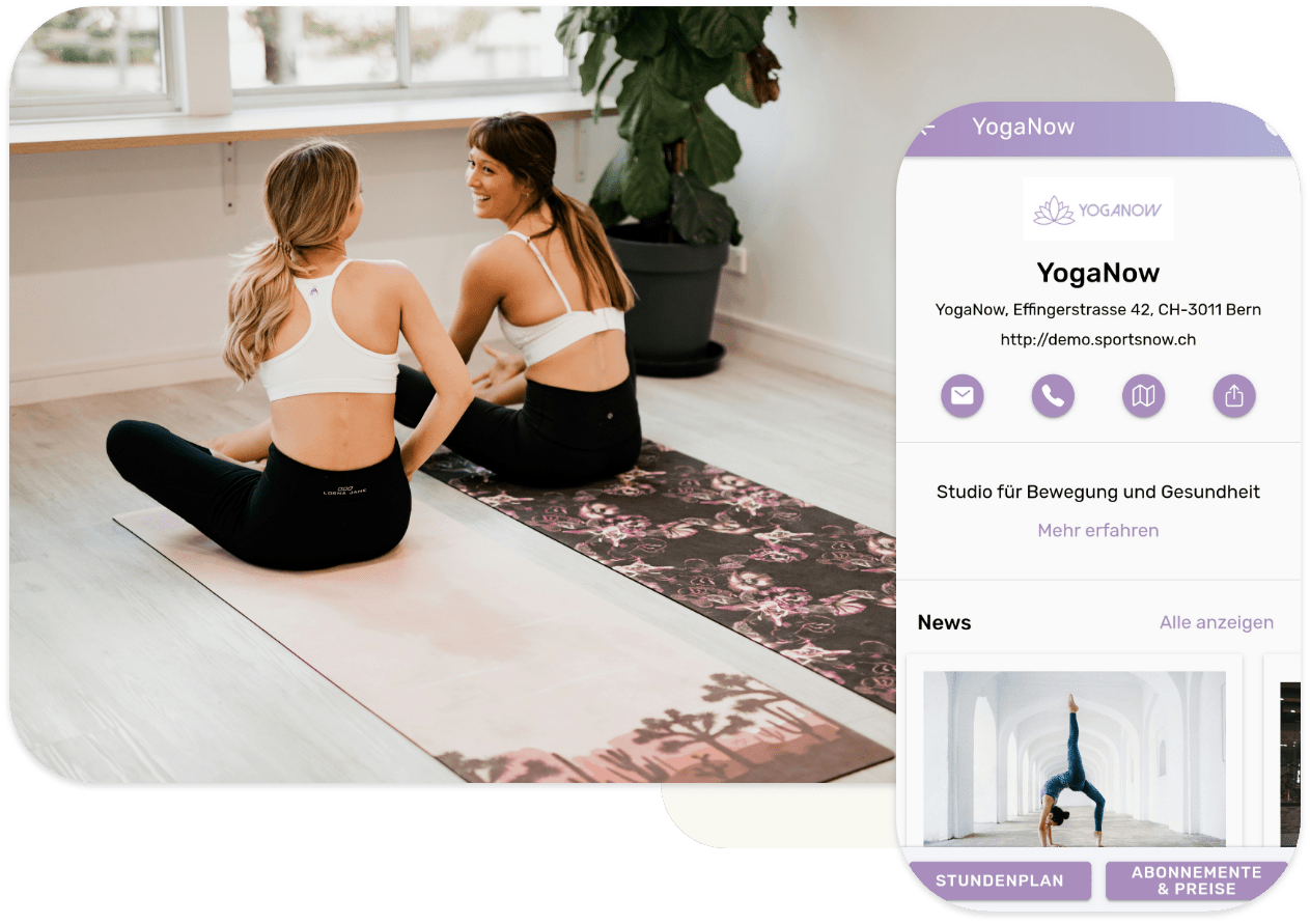 Einfach, bequem, effizient: Von der Stundenbuchung über den Abonnement-Kauf bis hin zum Check-In – In wenigen Schritten erledigen deine Mitglieder alles Wesentliche direkt mit der SportsNow App. Automatische Push-Nachrichten halten deine Mitglieder stets über wichtige Änderungen und Neuigkeiten informiert, sodass sie nichts mehr verpassen.