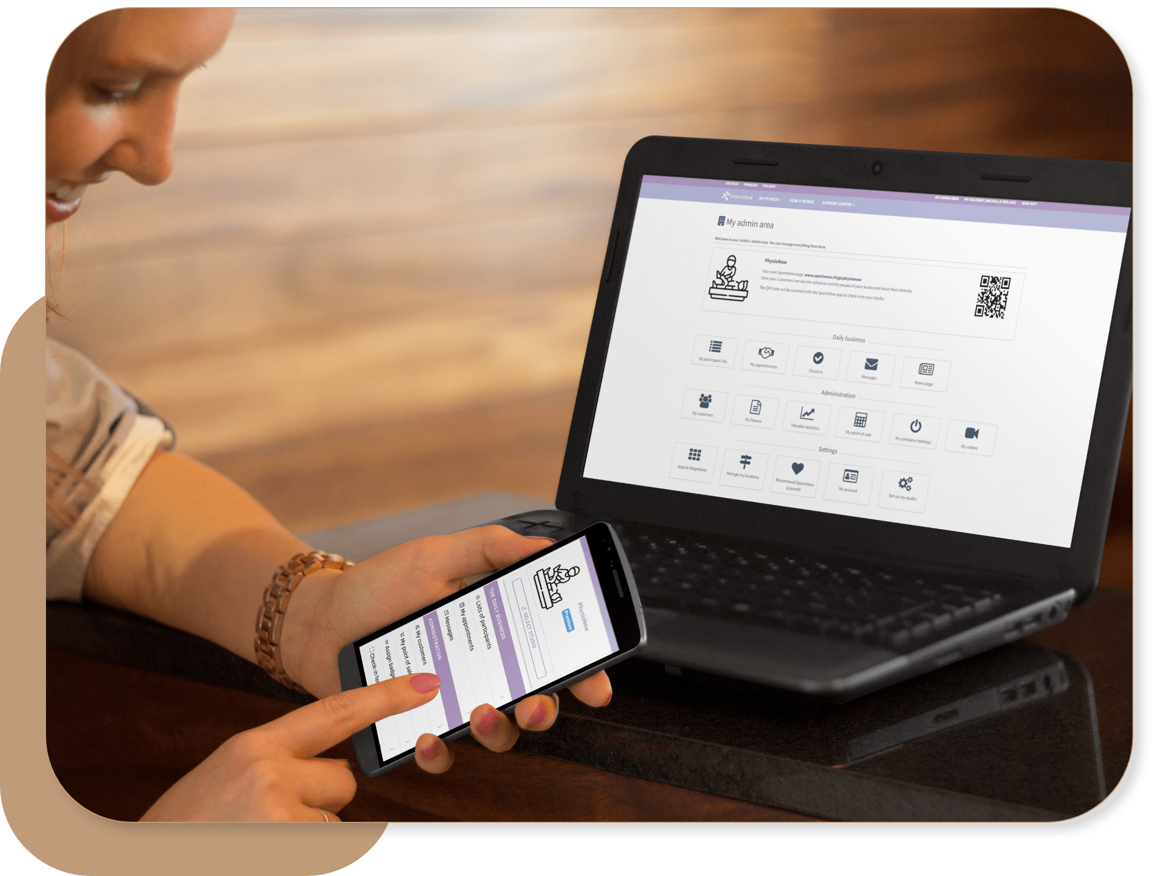 Connect useful applications with SportsNow and benefit from additional features. For example, SportsNow offers you integration with bexio business software or fitness equipment such as EGYM and Sensopro. In addition, you also have the option to fully integrate your SportsNow page into your own website.