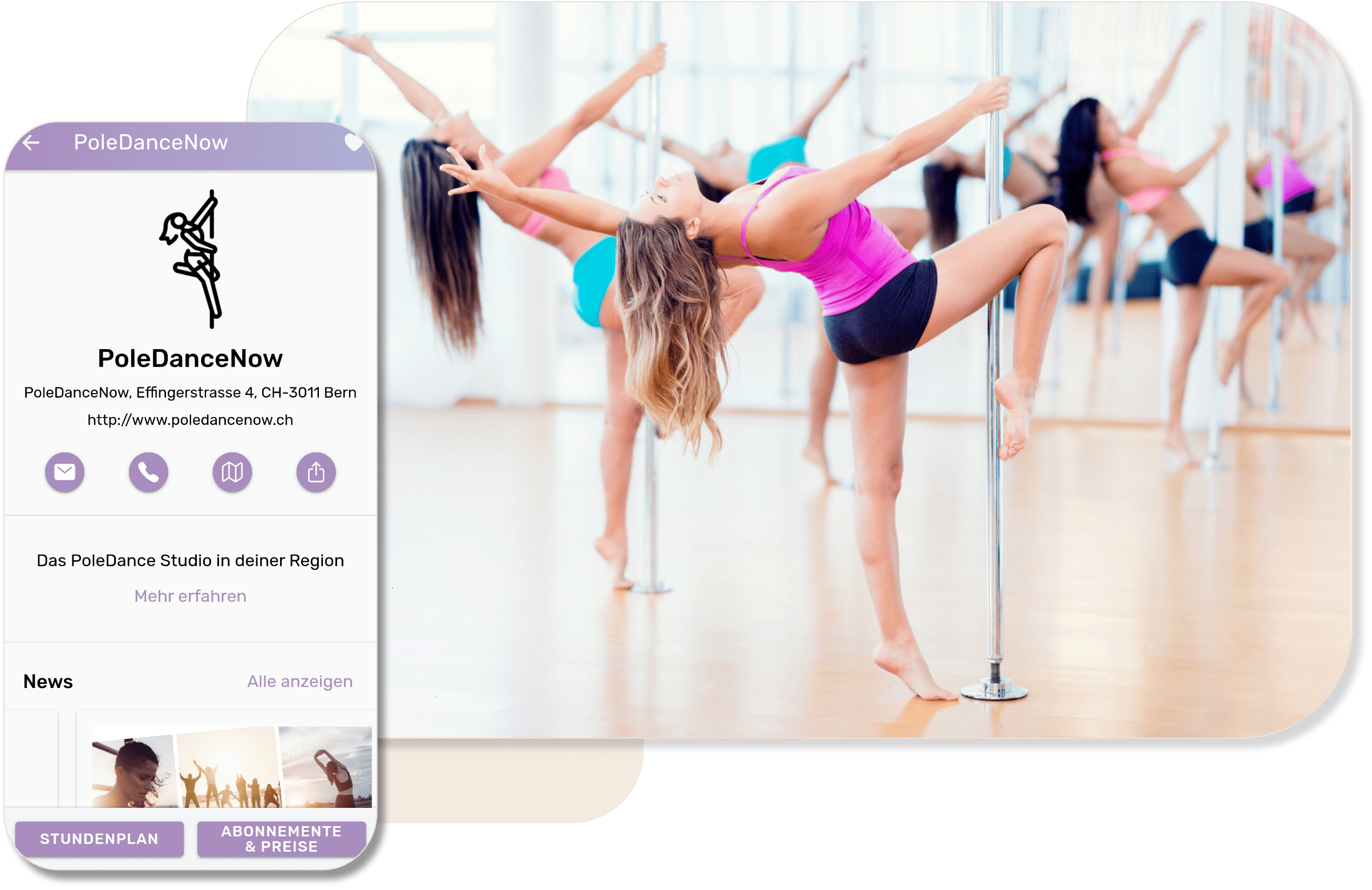 Egal, ob Poledance Stunden, Workshops oder individuelle Termine - Deine Mitglieder können direkt im Stundenplan das gewünschte Angebot aussuchen, ein Abonnement dazu kaufen und in wenigen Schritten online buchen.