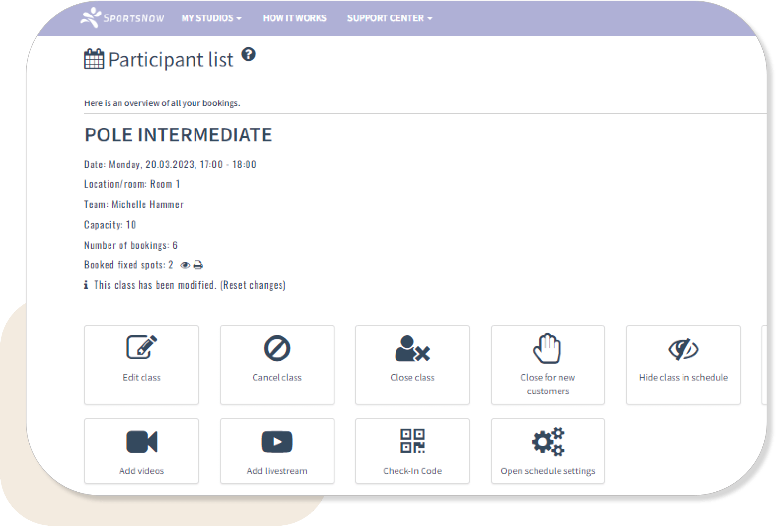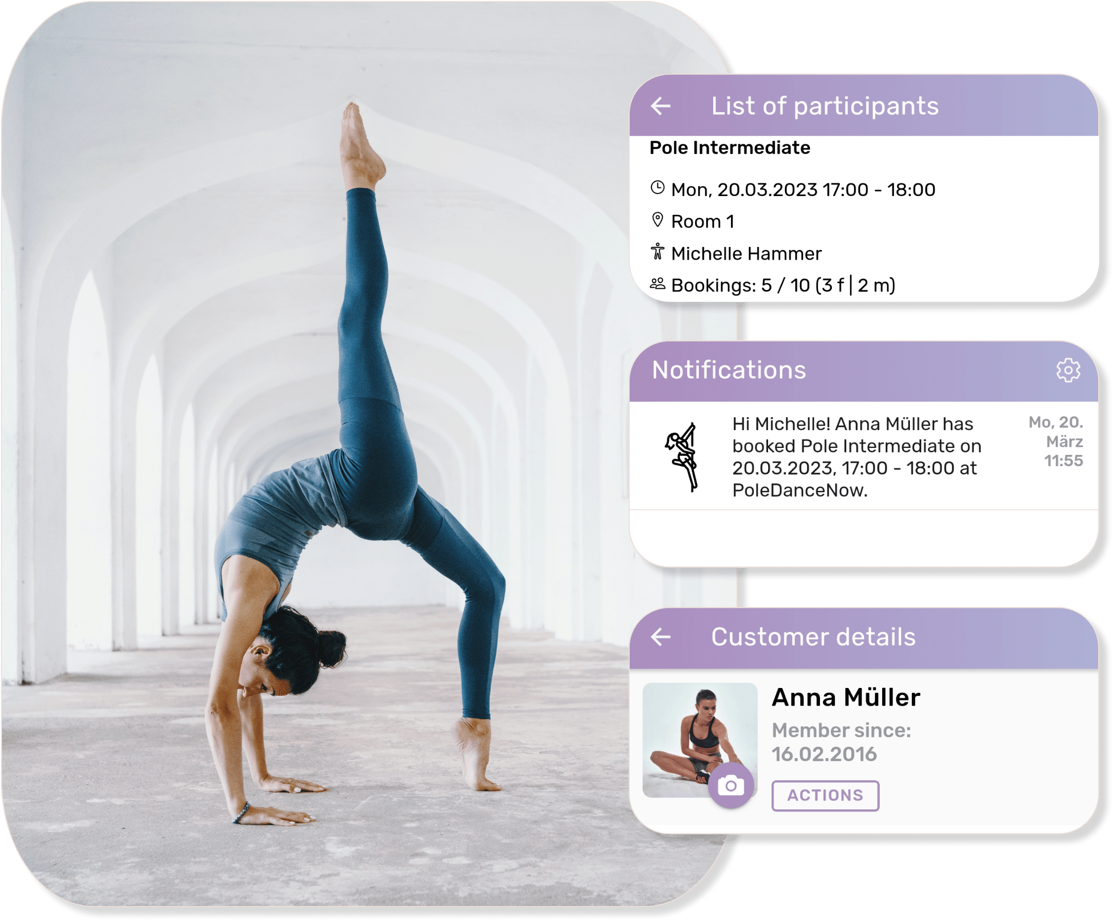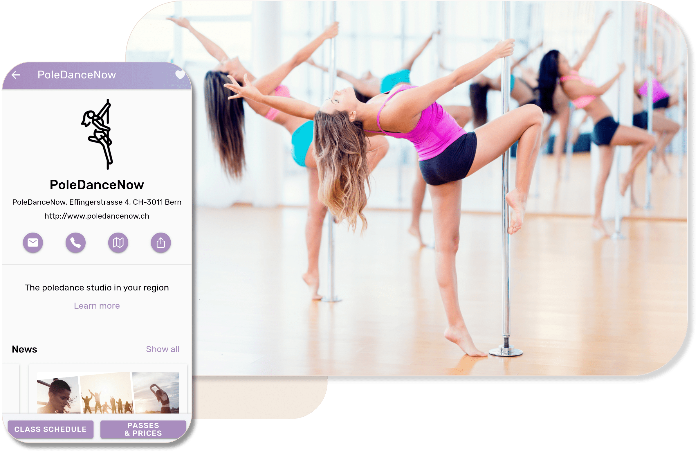 Whether pole dance classes, workshops or individual appointments - your members can choose the desired offer directly in the class schedule, buy a pass and book online in just a few steps.